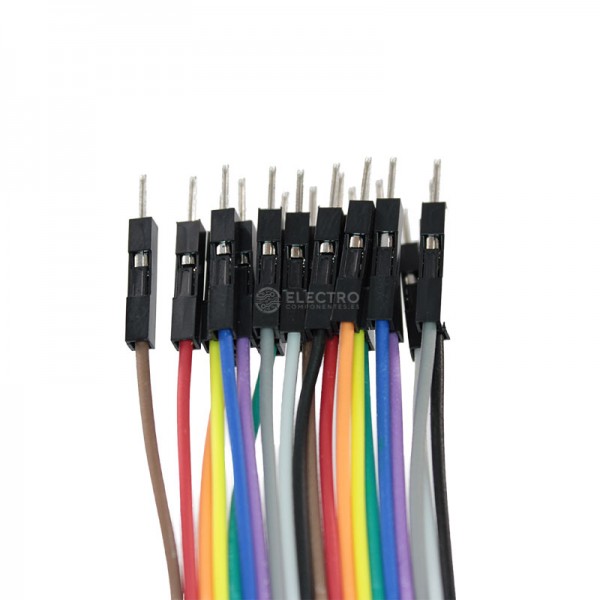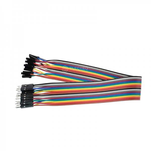 Lote de 20 cables jumper macho/hembra tipo Dupont 2,54mm de 30cm de largo y de varios colores. Este cable tiene el conector tipo Dupont de 2,54mm fabricado especialmente para ser compatible con protoboard, placas Arduino, sensores etc., con estos prácticos cables te olvidaras de estar pelando los cables y de soldar, esto te permitirá realizar más rápido tus conexiones y sin la molesta preocupación de que se desconecte un cableo de que haya algún falso contacto. Al ser flexibles y ajustables hacen más fácil su conexión y desconexión para que tu proyecto se vea mucho más ordenado, más fiable, y más fácil de depurar. Los cables vienen en una tira de cable plano de 20 conductores, cada conductor con su conector independiente. Se Pueden separar todos y utilizarlos de manera individual o crear tiras con el número de conductores que queramos. Se presentan en tiras de cable plano con 10 colores diferentes, de un largo de 30cm y con un calibre de 26 AWG.