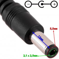 - Salida por conector: Jack macho DC 5,5mm x 2,1/2,5mm.