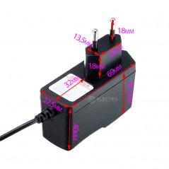 - Salida por conector: Jack macho DC 5,5mm x 2,1/2,5mm.