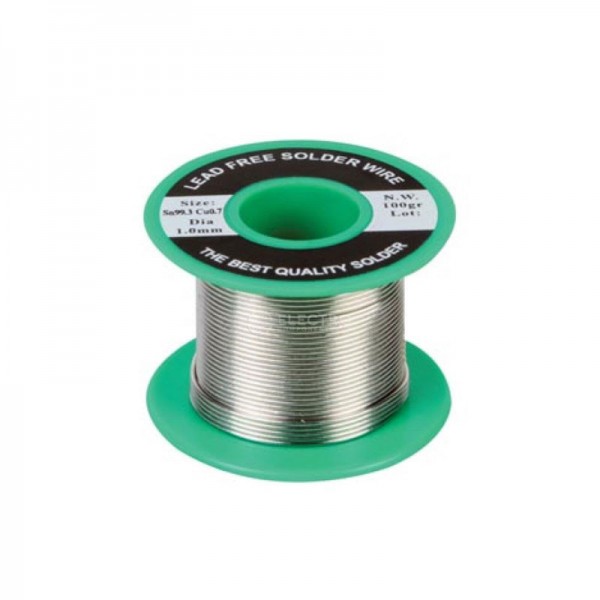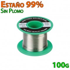 Bobina de hilo para soldadura compuesto por 99% de estaño y sin plomo. Se presenta en una bobina de 100g con un hilo de 1mm de diámetro.