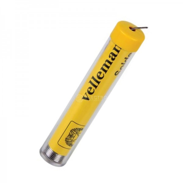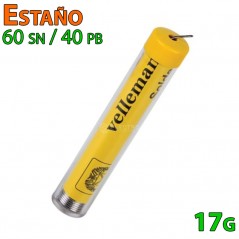 Dispensador de hilo para soldadura compuesto por 60% de estaño y 40% de plomo. Se presenta en un dosificador de 17g con un hilo de 1mm de diámetro.