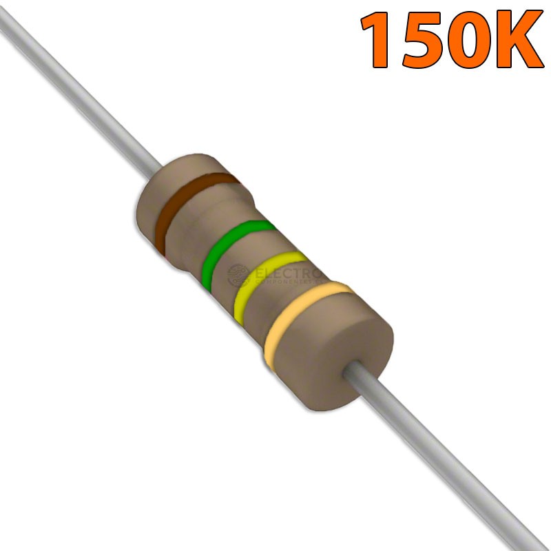 Esta resistencia es de 150K ohm y 0,25w de potencia con una tolerancia del ±5%, resiste un voltaje máximo de 300V, gracias a su forma pueden ser fácilmente incorporadas tanto a un protoboard como a una placa perforada o ser soldada directamente.