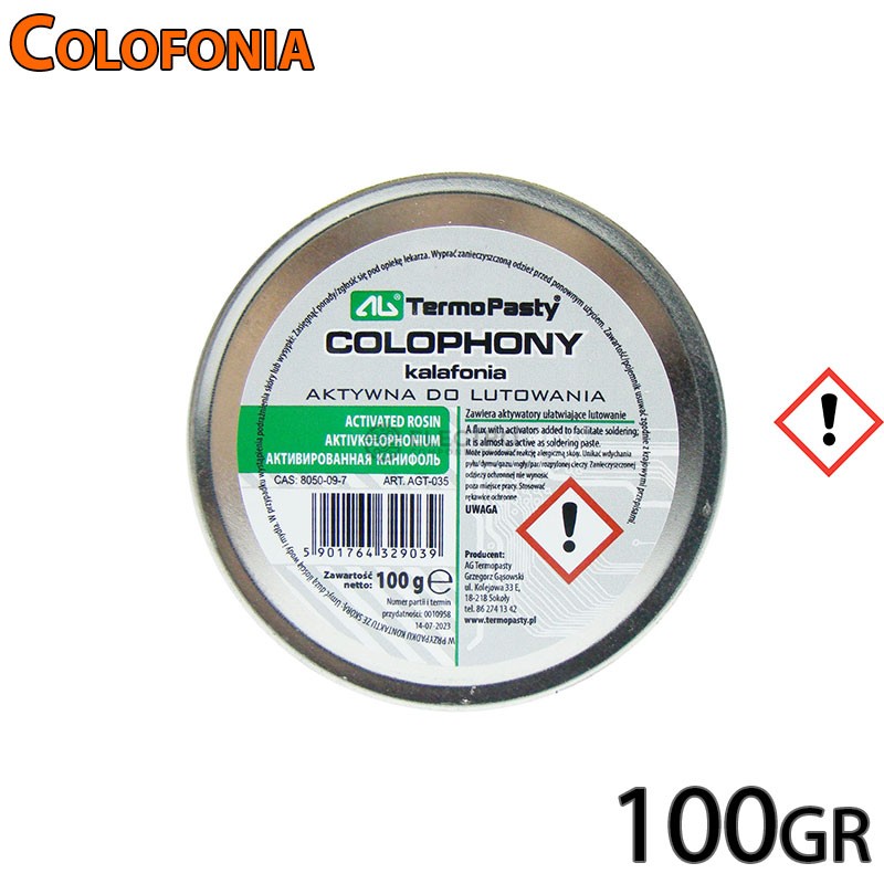 Ficha Técnica del Producto – Colofonia - https://termopasty.pl/wp-content/uploads/2019/07/Kalafonia-EN-3.pdf