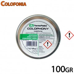 Fundente con la mezcla de activadores para facilitar la soldadura. El producto demuestra una actividad similar a la de una pasta de soldadura. Se utiliza como componente base para un flux de referencia (solución al 25% en alcohol isopropílico). Muy buen flux cuando se suelda con una aleación de estaño y plomo, utilizado para frotar el pelo del arco en instrumentos de cuerda con el fin de aumentar su tosquedad y, por lo tanto, su adhesión a las cuerdas, como aglutinante en pinturas de impresión que mejora simultáneamente sus propiedades, componente de barnices, selladores, jabones, plásticos, caucho.
