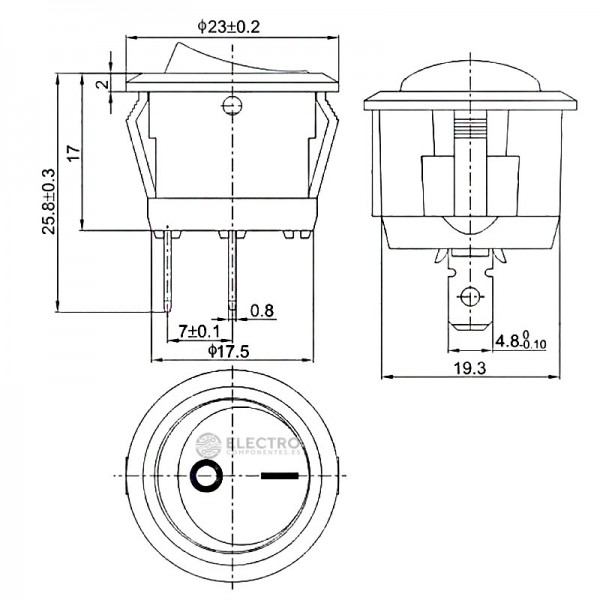 Interruptor cuadrado SPST de 2A/125v o 1A/220v de color rojo NEGRO para colocar en panel.