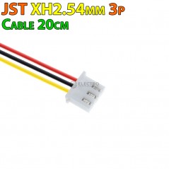 Cable AWG26 de varios colores con conector de 3 pines JST XH2.5 en un extremo y presoldado en el otro, 20cm de longitud. La serie XH de JST está conformada por conectores de estilo crimpado, con paso de 2,5 mm (0,984") y desconectables. Se desarrollaron basándose en la alta versatilidad y fiabilidad de los conectores de la serie NH. El conector es muy pequeño con una altura de montaje de 9,8 mm. Estos conectores de cable a placa se utilizan generalmente para llevar la energía a una placa PCB. Soportan tamaños de cable de 22 a 30 AWG. La corriente nominal de la serie XH es 3A CA/CC (250v CA/CC). Todos los conectores de la serie XH cumplen con las normas RoHS.