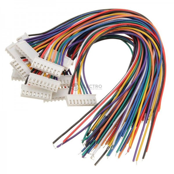 Cable AWG26 de varios colores con conector de 7 pines JST XH2.5 en un extremo y presoldado en el otro, 20cm de longitud.