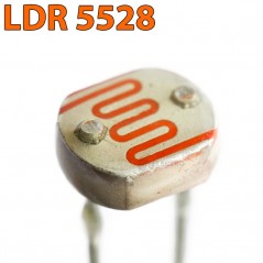El valor de resistencia eléctrica de esta LDR GL5528 es de 10K ohm cuando hay luz incidiendo en ella, y cuando está a oscuras es de 1M ohm. Puede soportar voltajes de 150v y es capaz de disipar potencias de hasta 100mW.