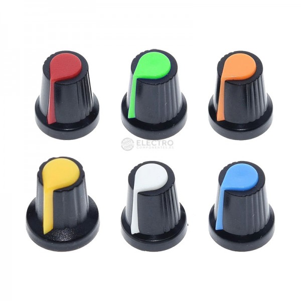 Potenciómetro B100K lineal de 100KΩ . Eje estriado de 6mm (18 dientes) y terminales para PCB o soldar. Incluye p erilla para potenciómetros...