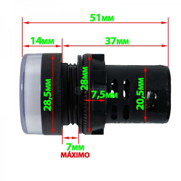 Piloto LED NARANJA de 12v para colocar en cuadros eléctricos o cajas de mandos. Índice de protección IP65 .