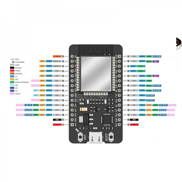 Botones: RESET y BOOT.