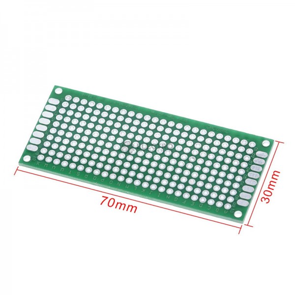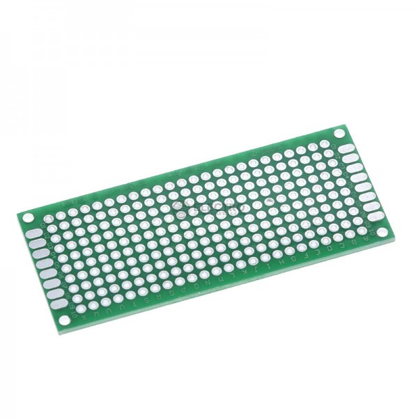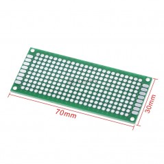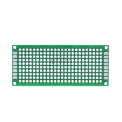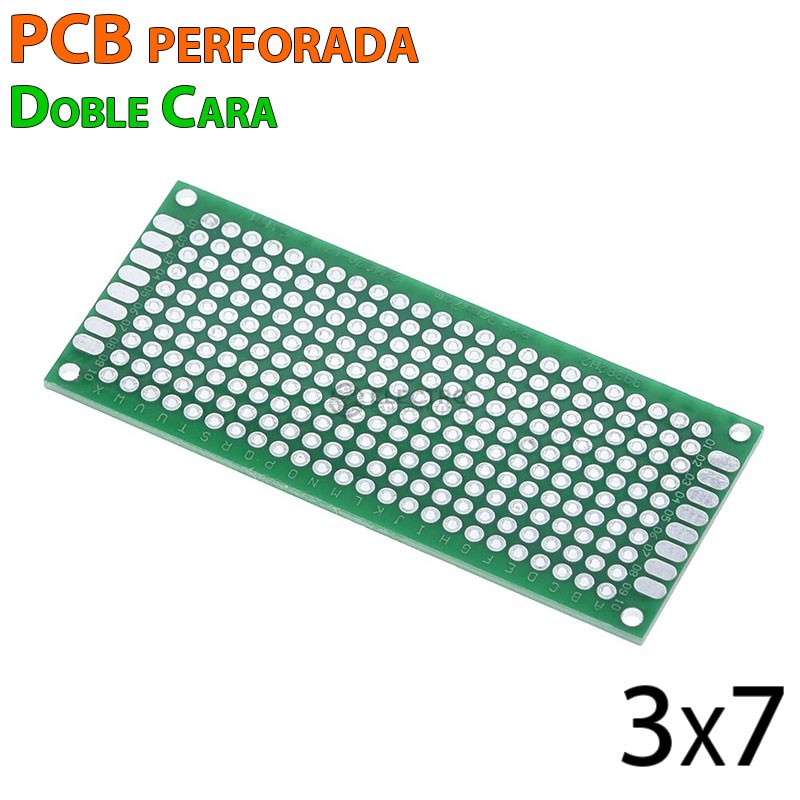 Placa PCB perforada de doble cara con un paso de 2,54mm, ideal para armar y soldar componentes electrónicos y realizar nuestros proyectos.