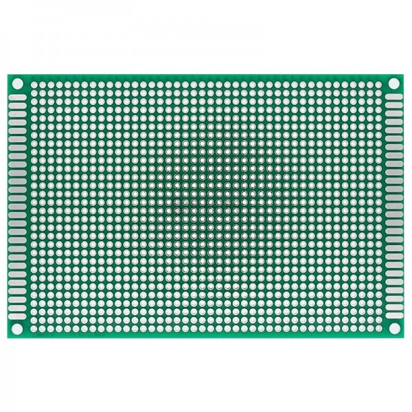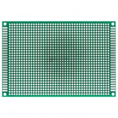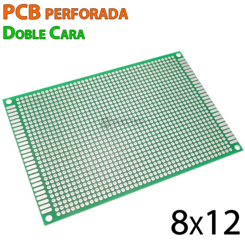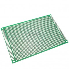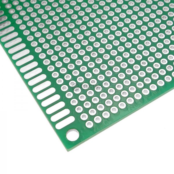Placa PCB perforada de doble cara con un paso de 2,54mm, ideal para armar y soldar componentes electrónicos y realizar nuestros proyectos.