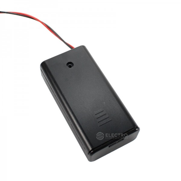 Portapilas cerrado para dos pilas AA ideal para crear una fuente de alimentación portátil de 3v DC, con los cuales puedes alimentar muchos proyectos basados en microcontroladores entre ellos la plataforma Arduino, PIC, AVR, etc. Dispone de tapa que cierra completamente el portapilas y protege las pilas de su interior, se puede bloquear la tapa colocando un pequeño tornillo (no incluido) en el agujero de la tapa. Tiene un interruptor para encender o apagar el portapilas de forma rápida. Fabricado en plástico de color negro, incluye cables de 15cm para una conexión más sencilla a nuestros proyectos.