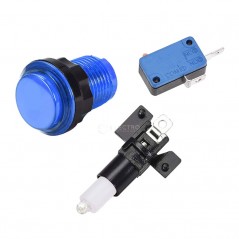 Pulsador arcade con un diámetro de 33mm en color AZUL. Dispone de iluminación LED y funciona con voltajes de 5v a 12v.