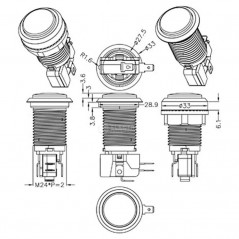 Pulsador Arcade 33mm AZUL con LED redondo 5v 12v