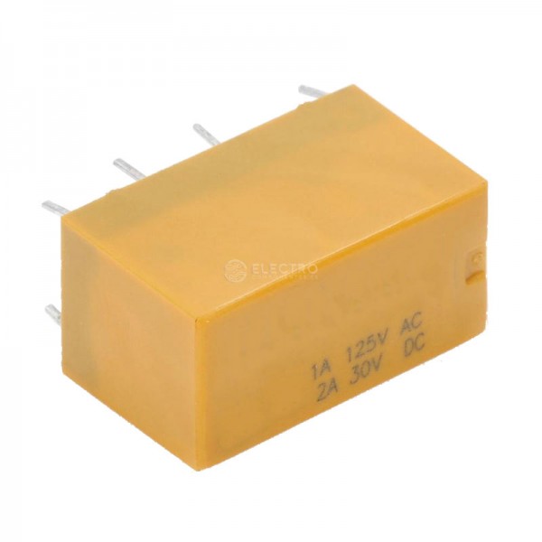 Relé con bobina de 5v, capaz de conmutar cargas de hasta 2A y con un contacto DPDT. El relé HK19F-DC5V-SH, su configuración es DPDT (dos polo, dos contactos) y su montaje es en circuito impreso, cuenta con 8 pines.